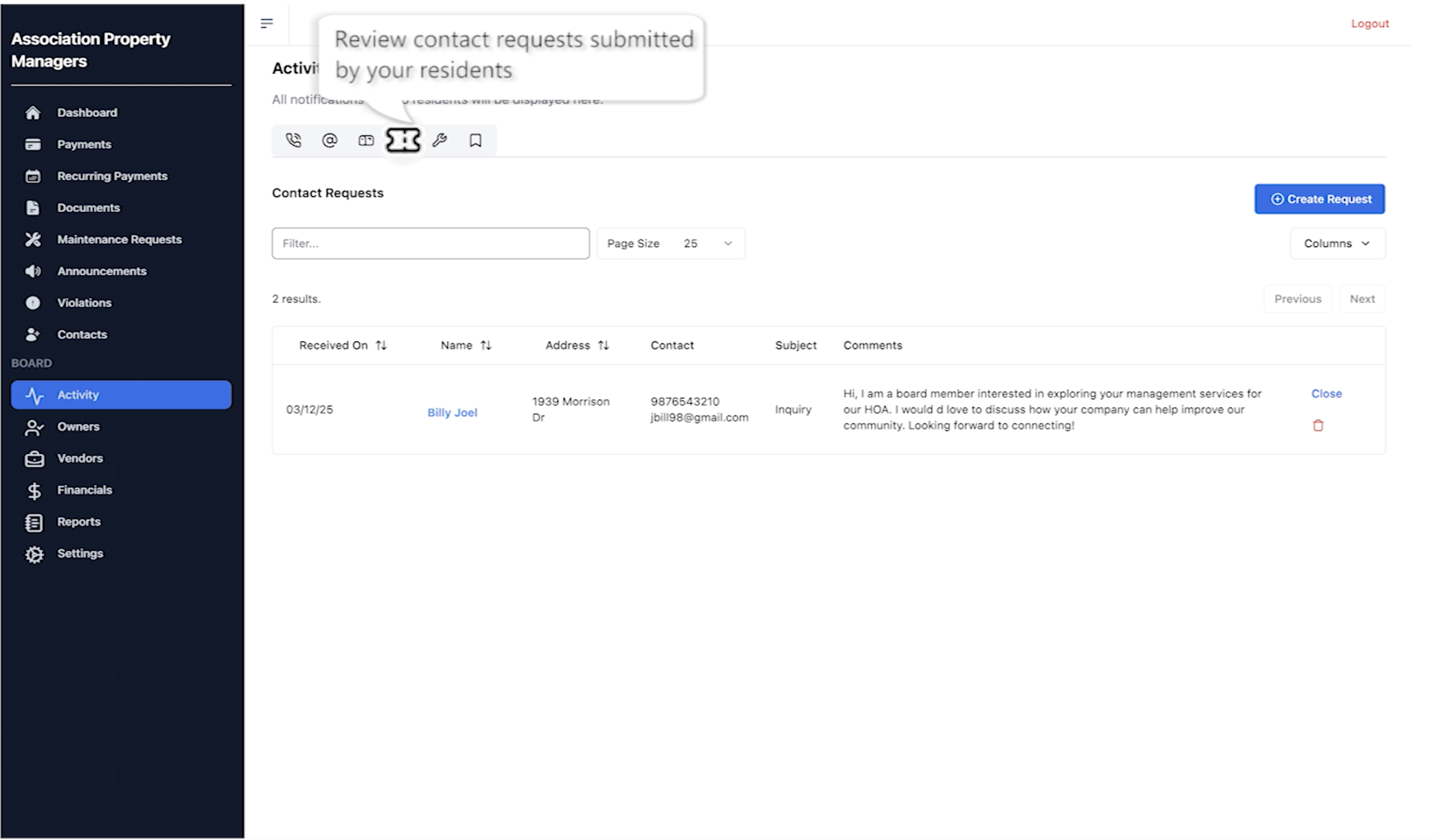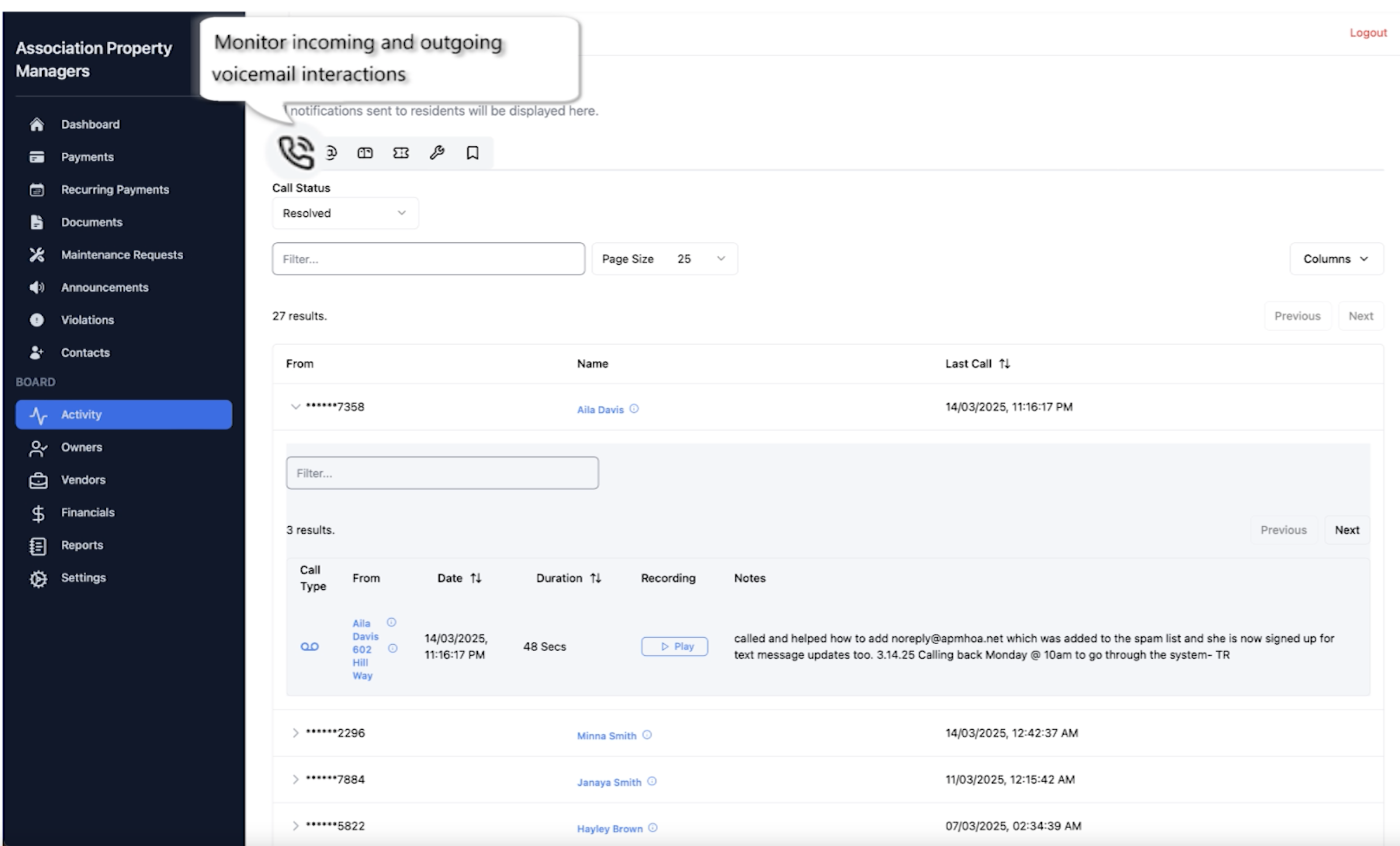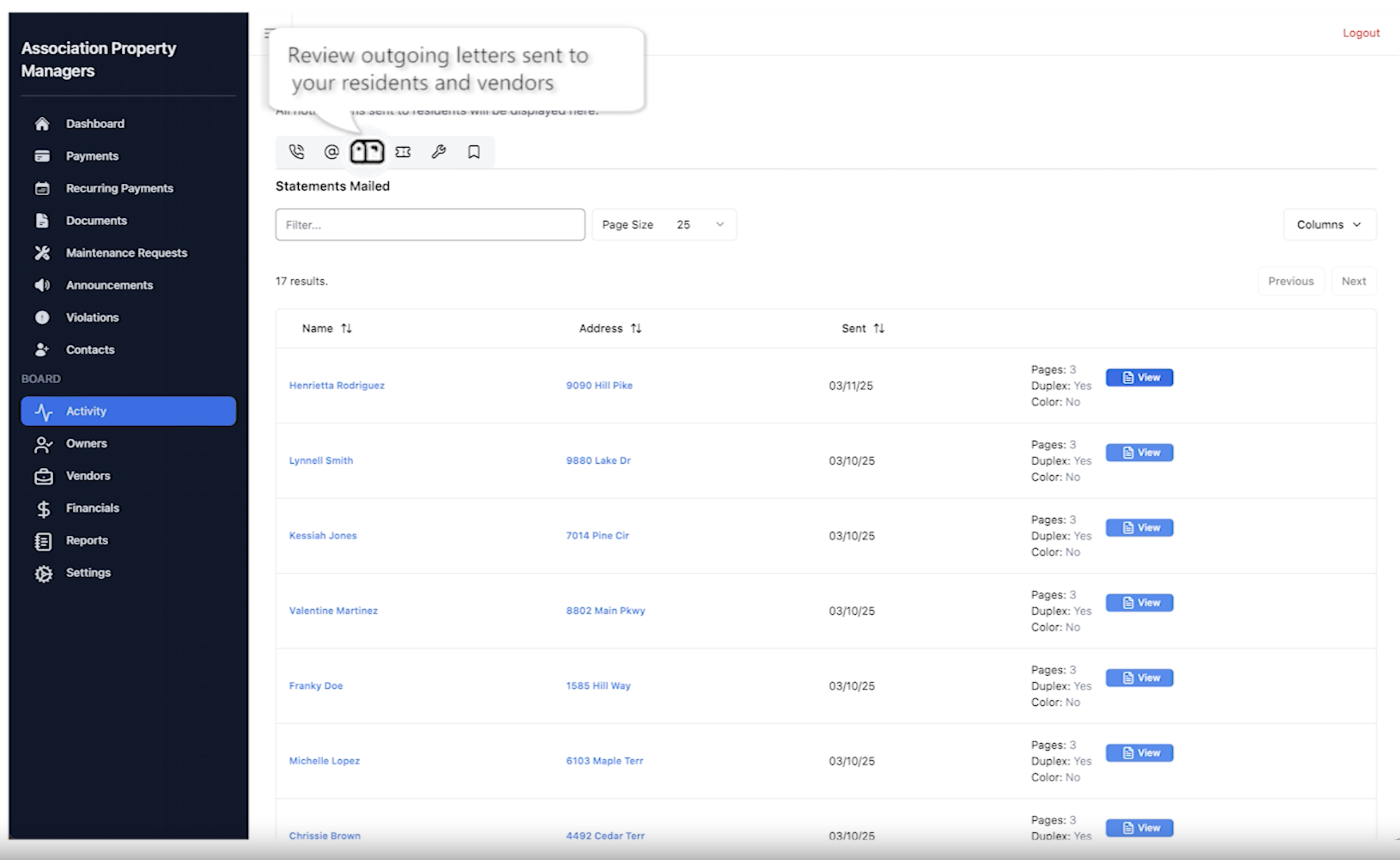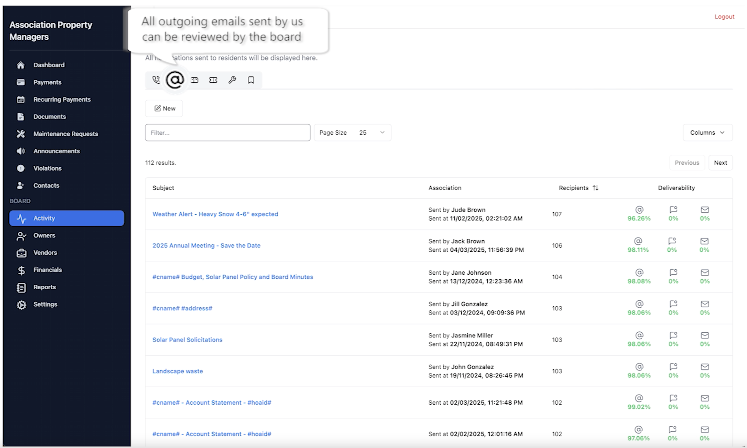 We share all interactions with residents and vendors with the Board Members.
